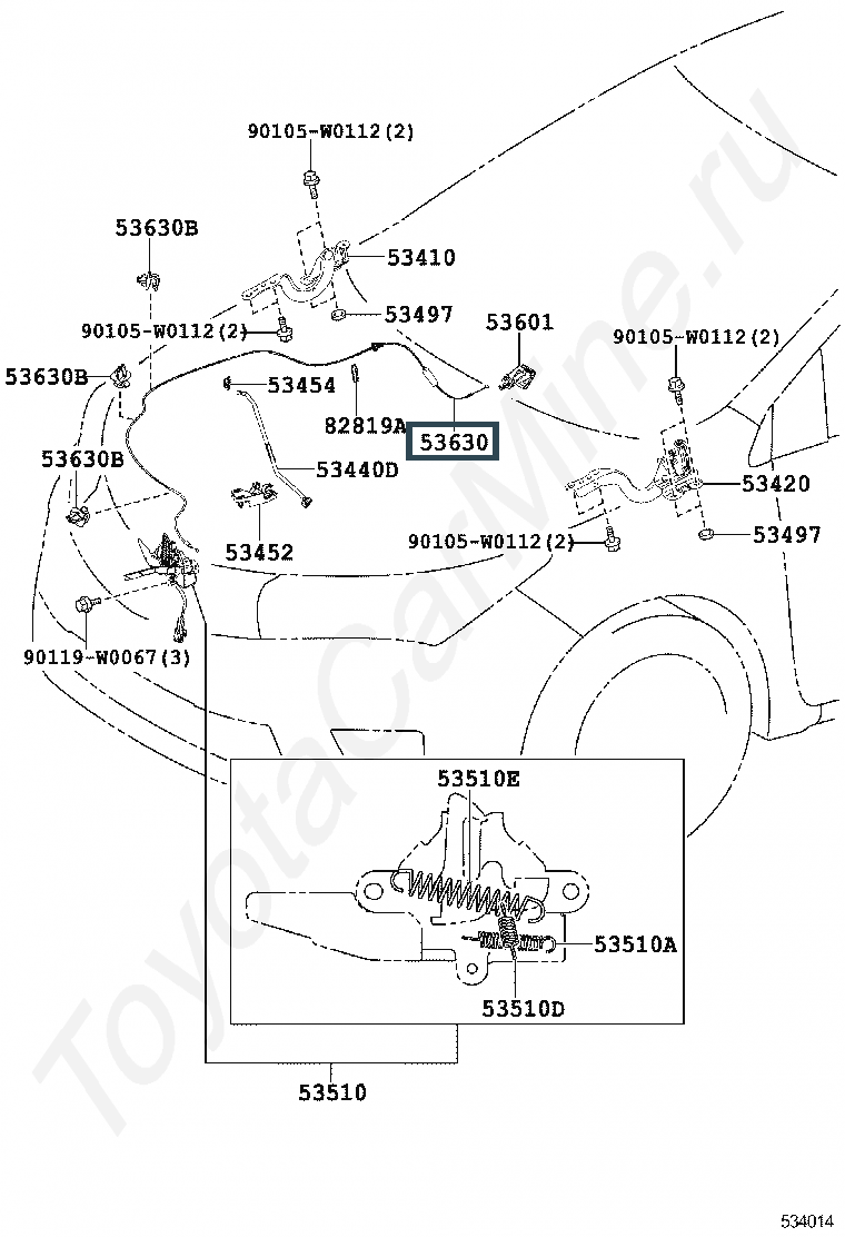 53630-12700, CABLE ASSY, HOOD LOCK CONTROL