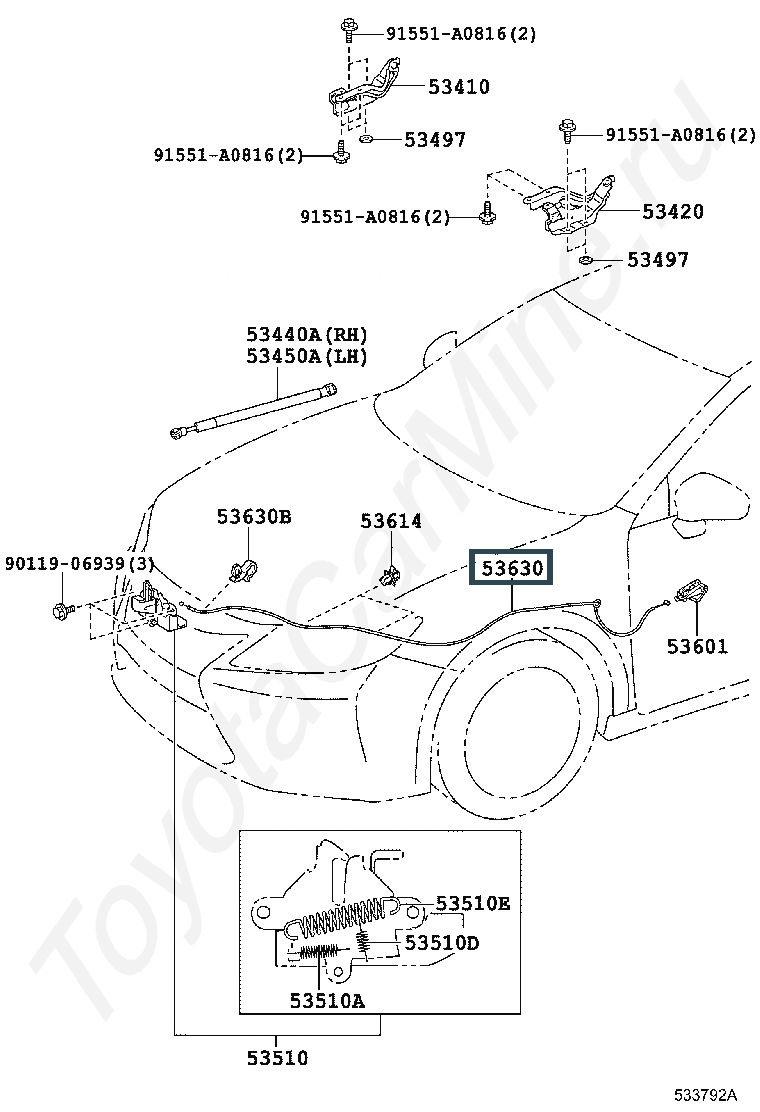 53630-33180, CABLE ASSY, HOOD LOCK CONTROL