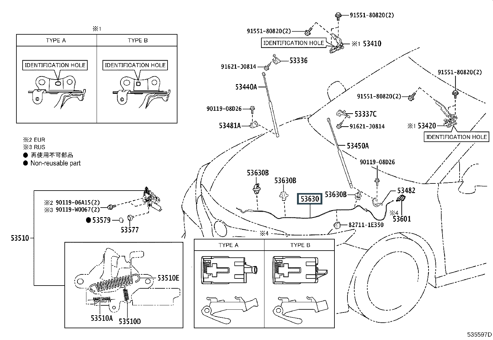 53630-33201, CABLE ASSY, HOOD LOCK CONTROL