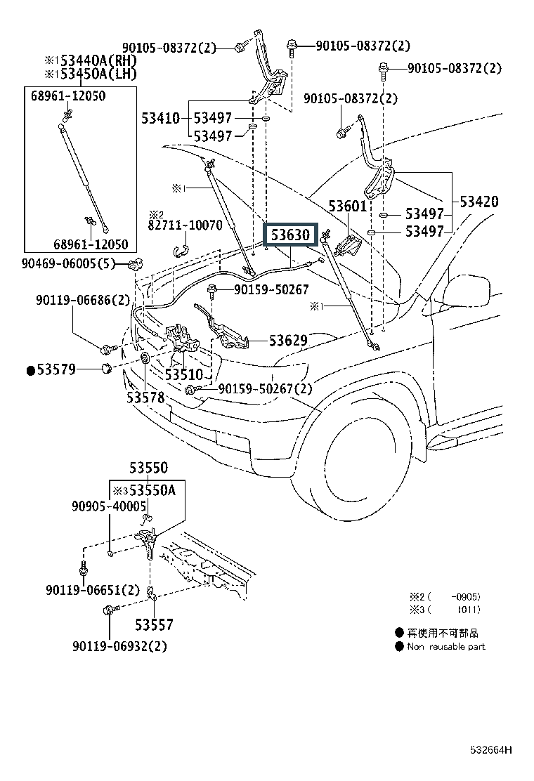 53630-60200, CABLE ASSY, HOOD LOCK CONTROL
