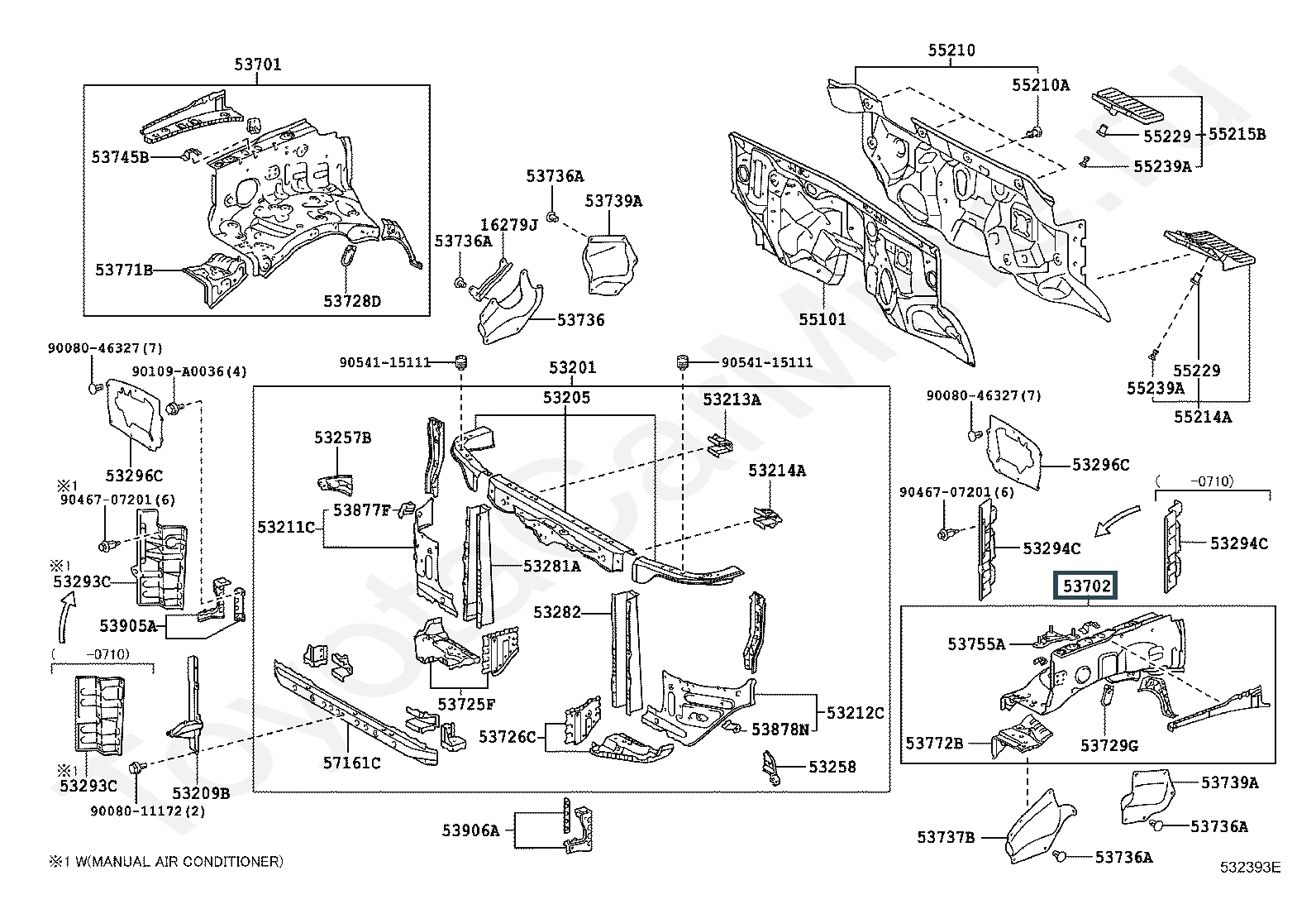 53702-0C210, APRON SUB-ASSY, FRONT FENDER, LH