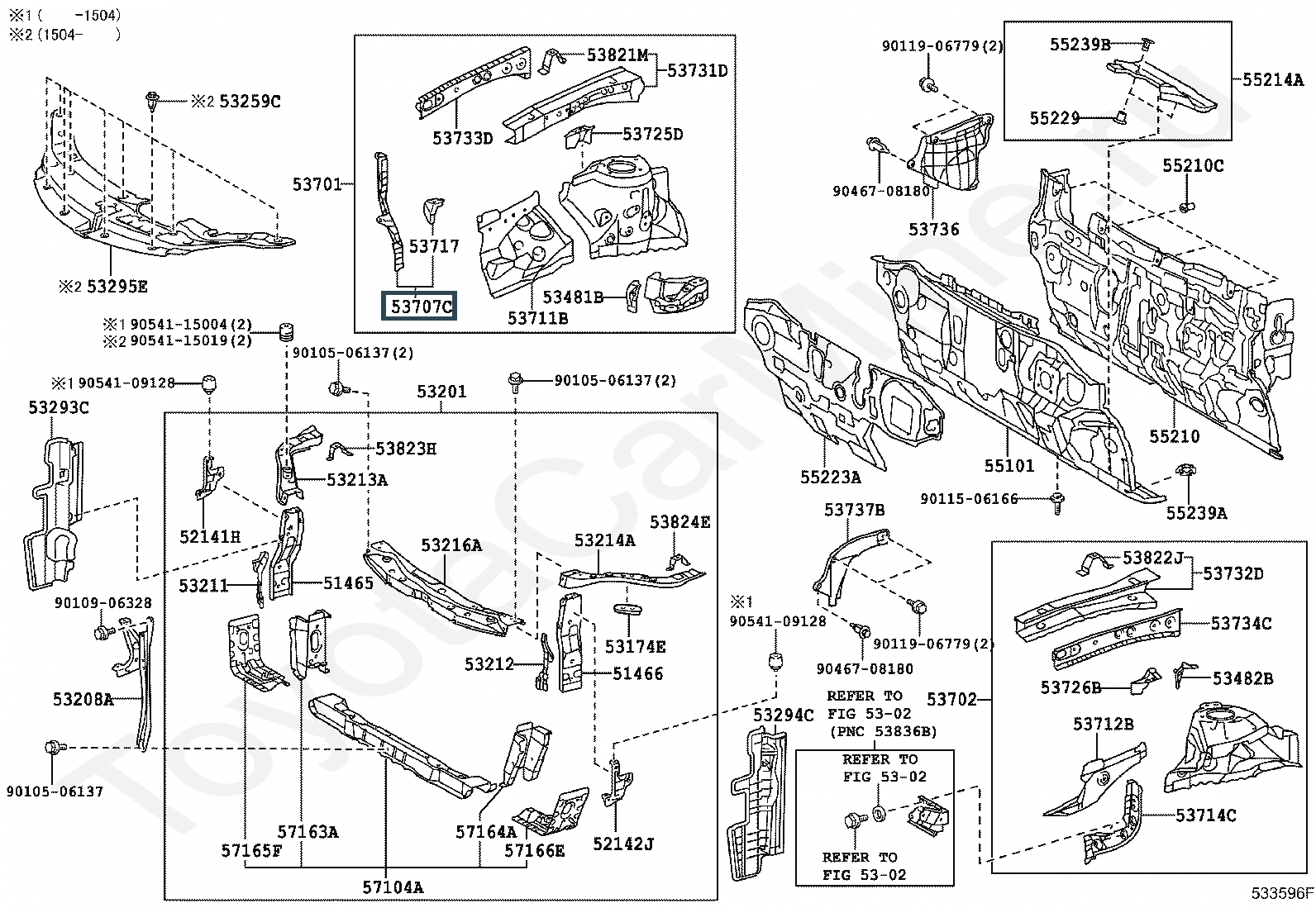 53707-33010, Усилитель брызговика правого вертикальны