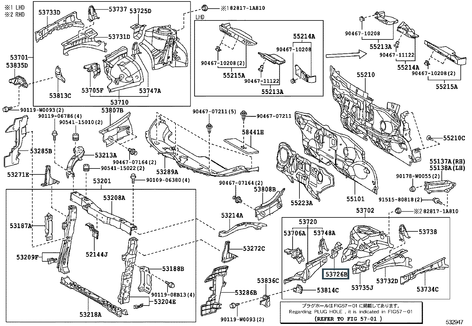 53726-02010, REINFORCEMENT, FRONT SPRING SUPPORT, NO.2 LH