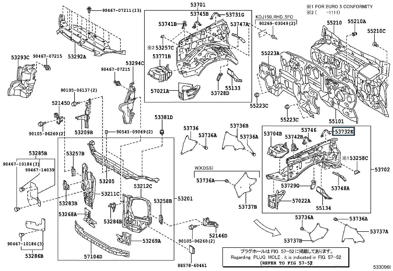 53732-60070, REINFORCEMENT, FRONT FENDER APRON, LH