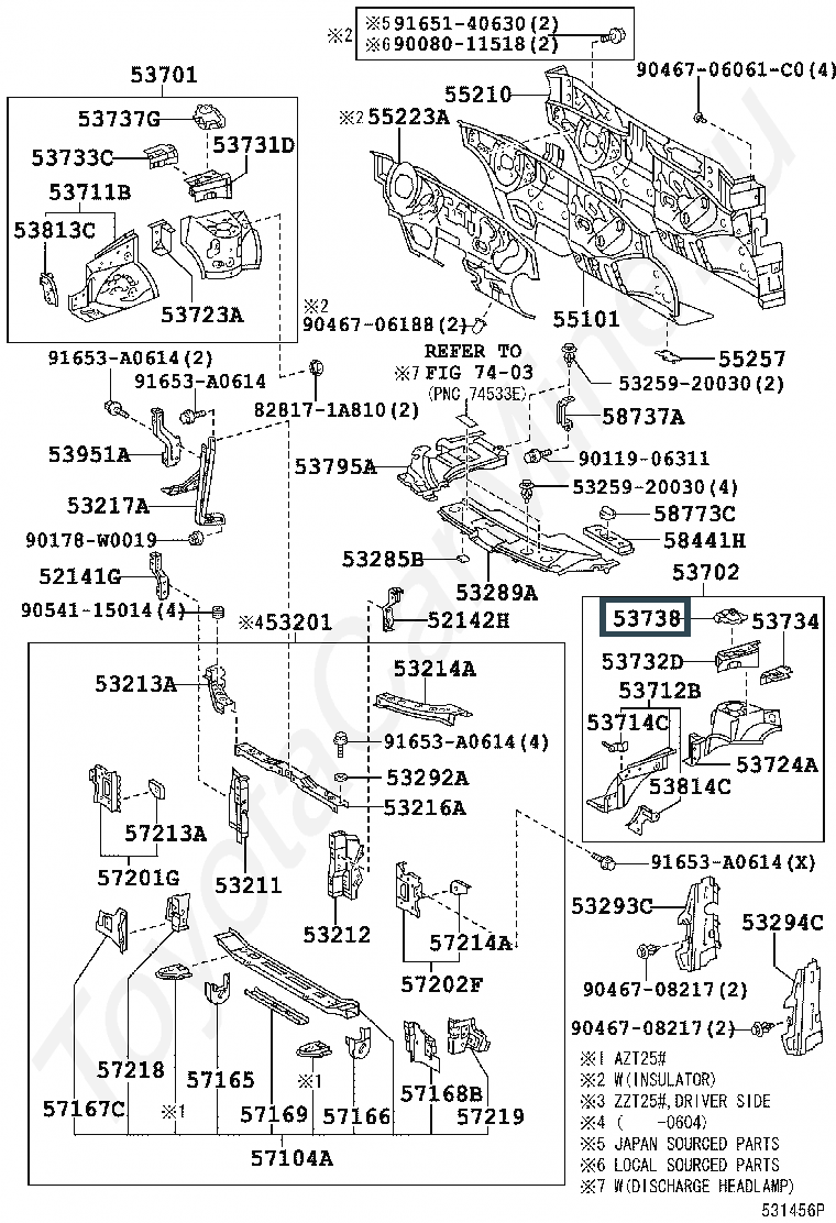 53738-05010, PLATE, FRONT APRON TO COWL SIDE MEMBER, LH
