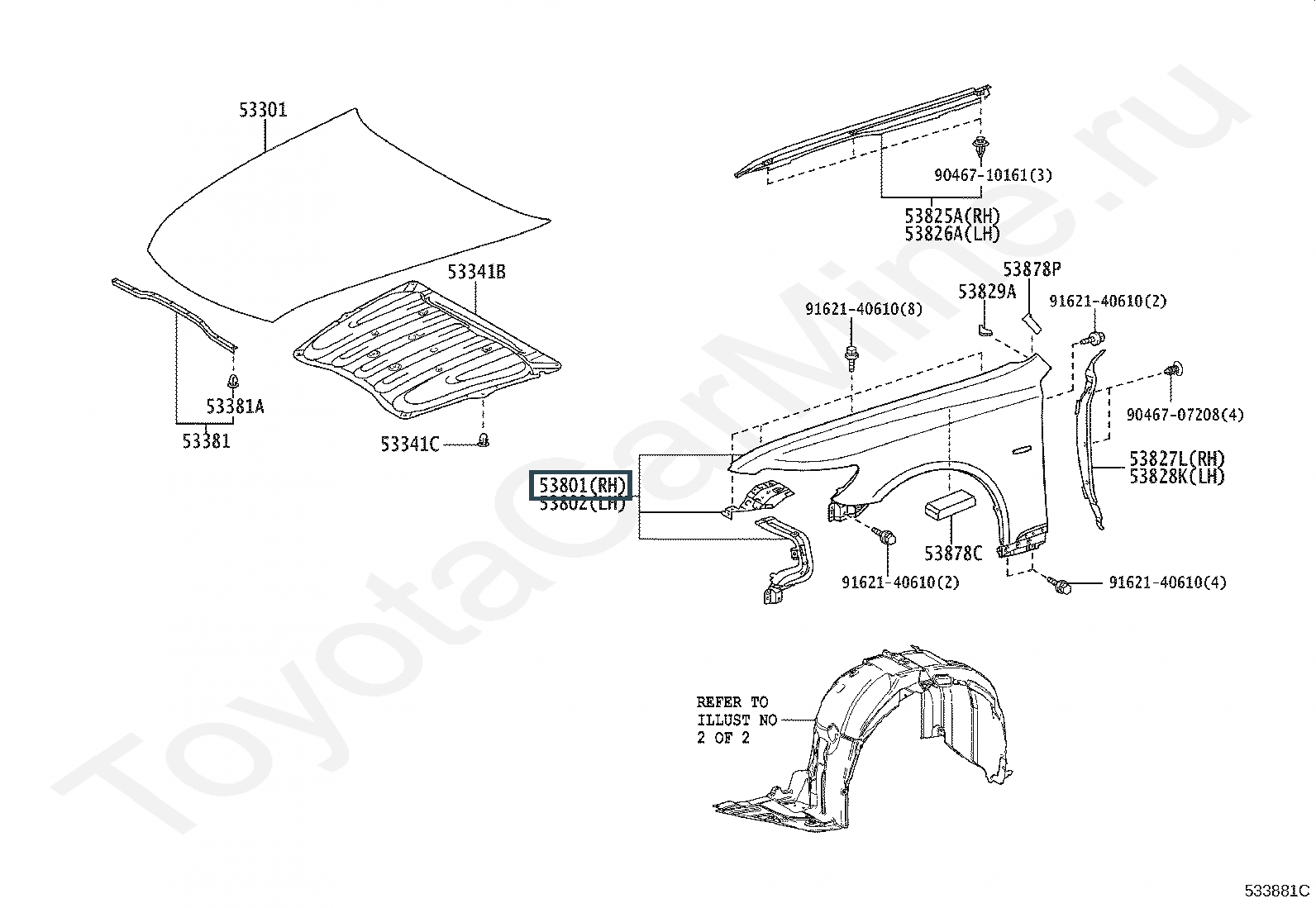 53801-50210, FENDER SUB-ASSY, FRONT RH