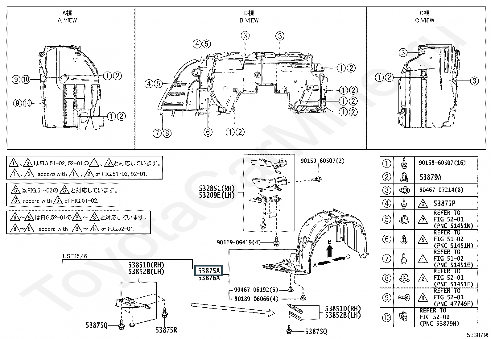 53805-50070, Подкрылок передний правый