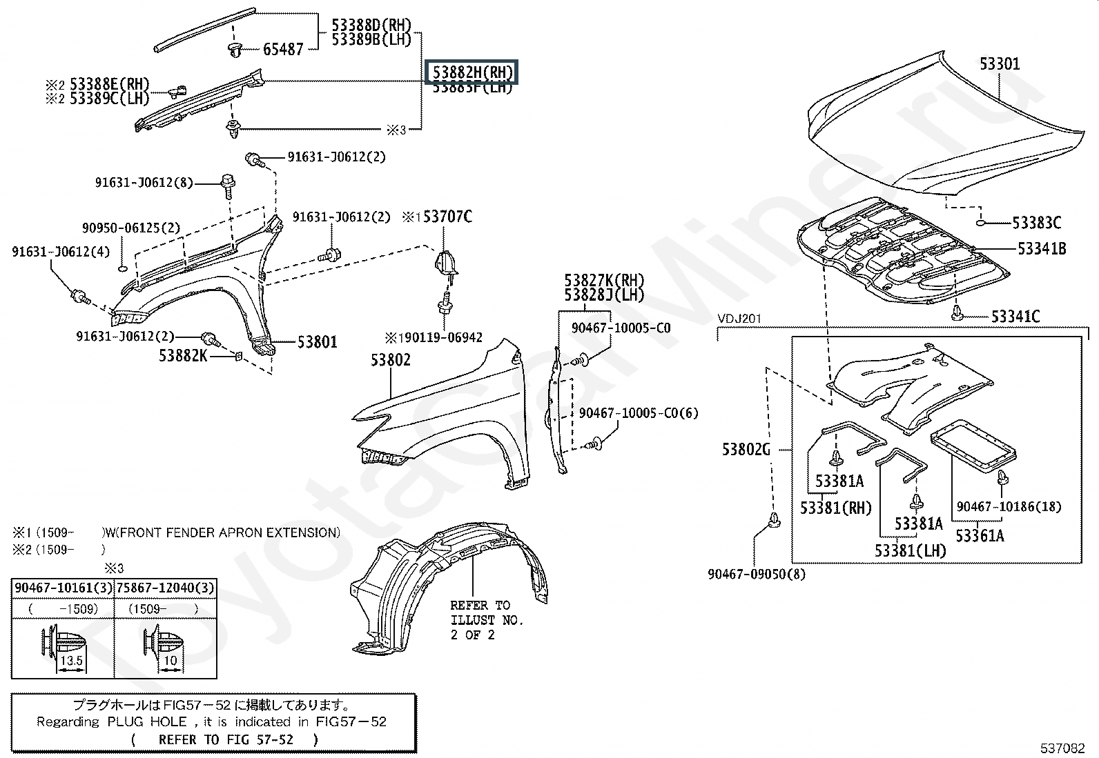 53805-60100, SEAL, FRONT FENDER MAIN, RH