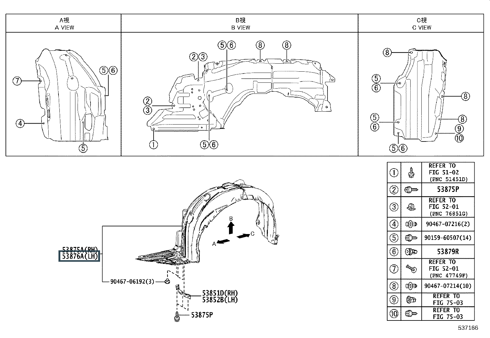 53806-53070, Подкрылок левый