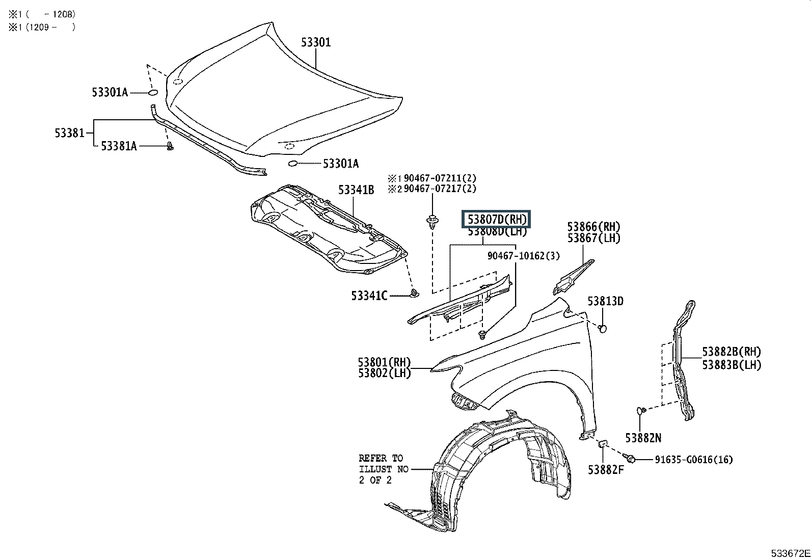53807-48031, REINFORCEMENT SUB-ASSY, FRONT FENDER, TOP RH