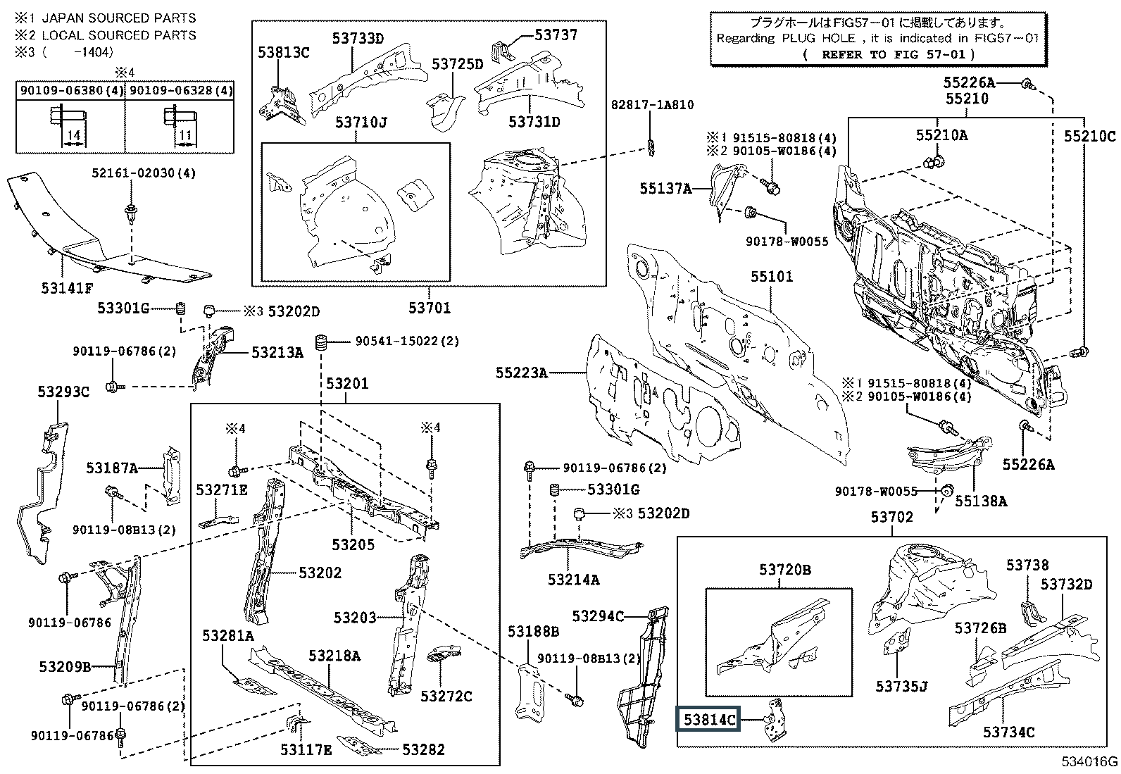53814-02120, EXTENSION, FRONT FENDER, LH