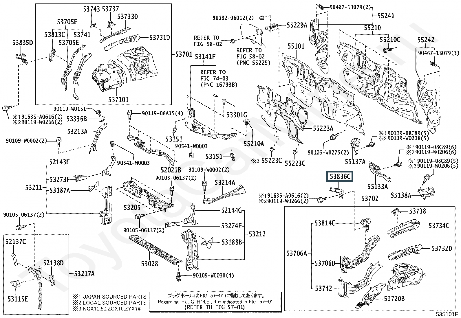 53836-F4010, BRACKET, FRONT SIDE PANEL, LH