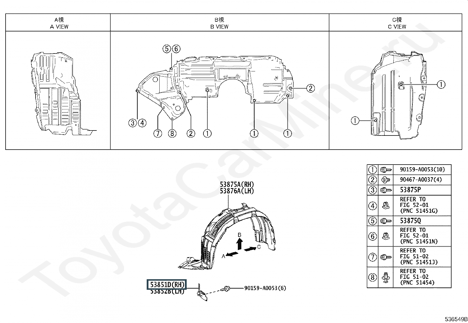 53851-0E020, PAD, FRONT WHEEL OPENING EXTENSION, RH