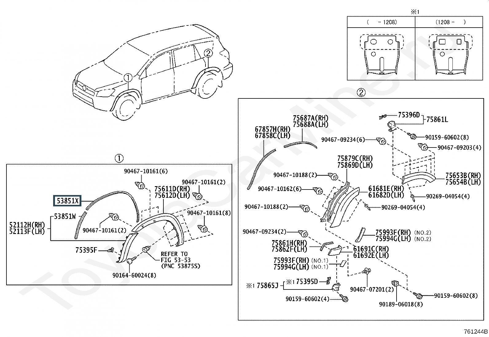 53851-42220, Уплотнитель пер расширителя крыла rav 06