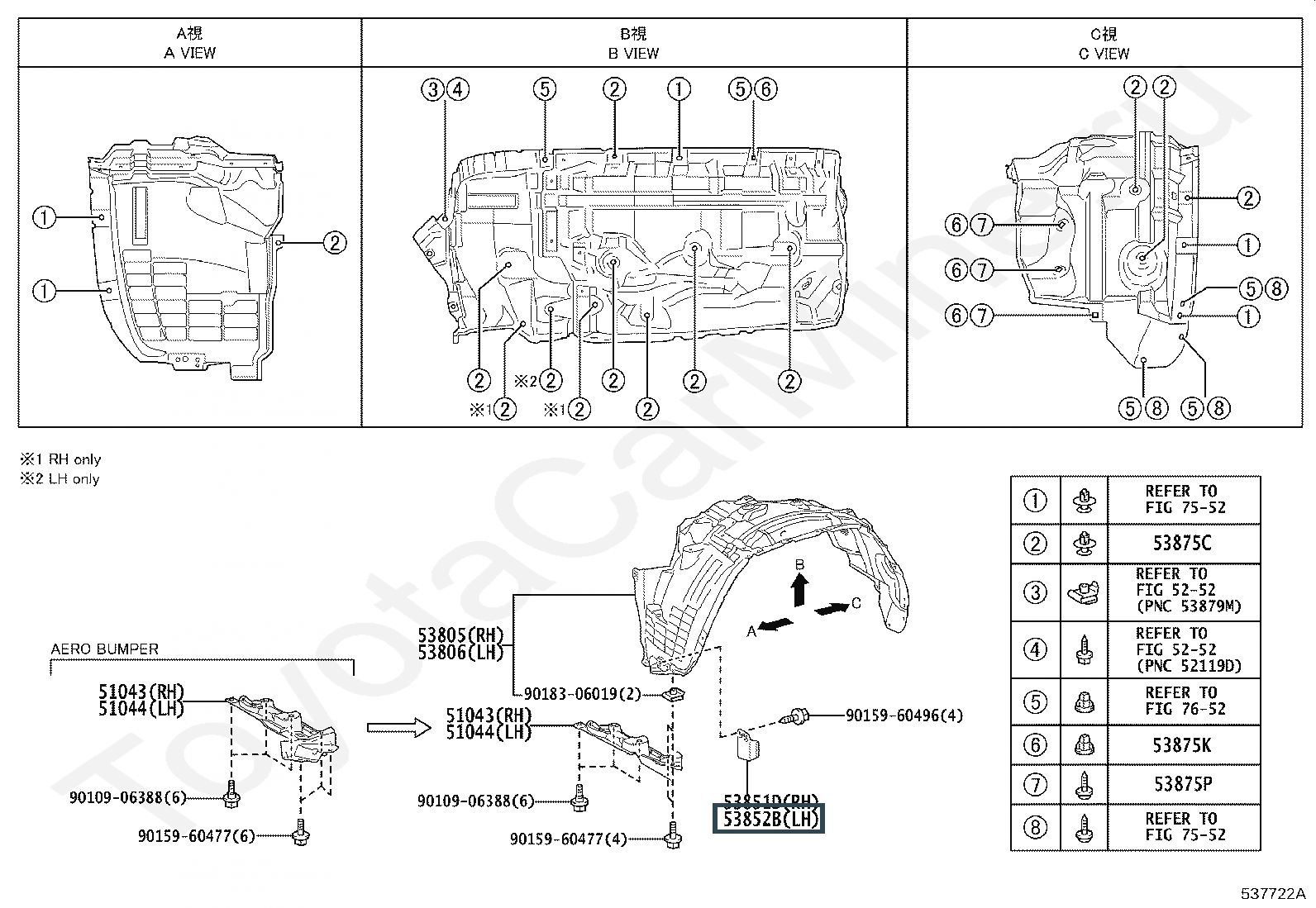 53852-60120, PAD, FRONT WHEEL OPENING EXTENSION, LH