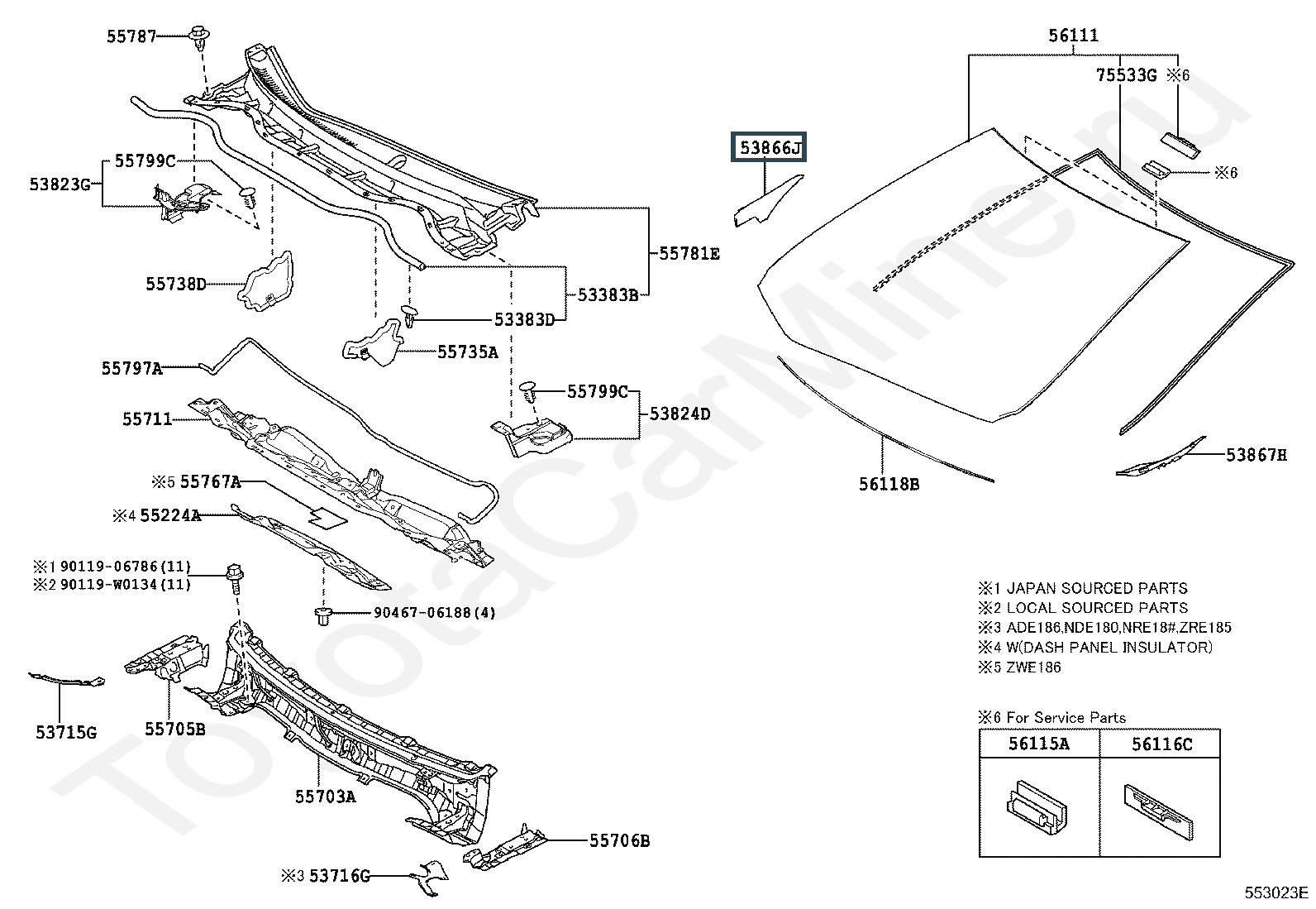 53866-02040, SEAL, FRONT FENDER TO COWL SIDE, RH