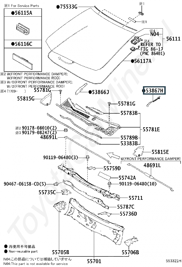 53867-78020, SEAL, FRONT FENDER TO COWL SIDE, LH