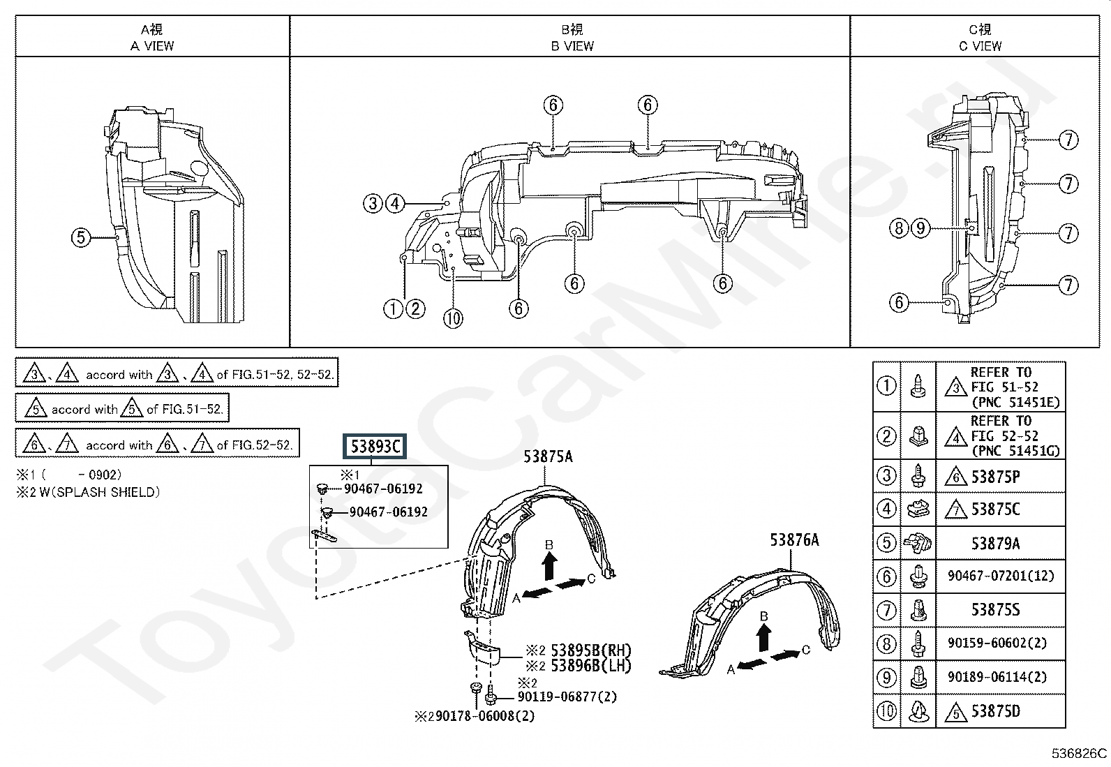 53893-42021, RETAINER, FRONT FENDER SPLASH SHIELD, FRONT