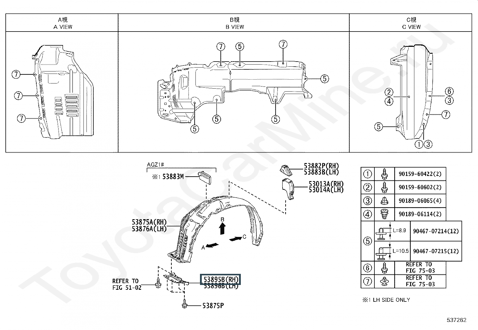 53895-78011, Щиток подкрылка передний правый