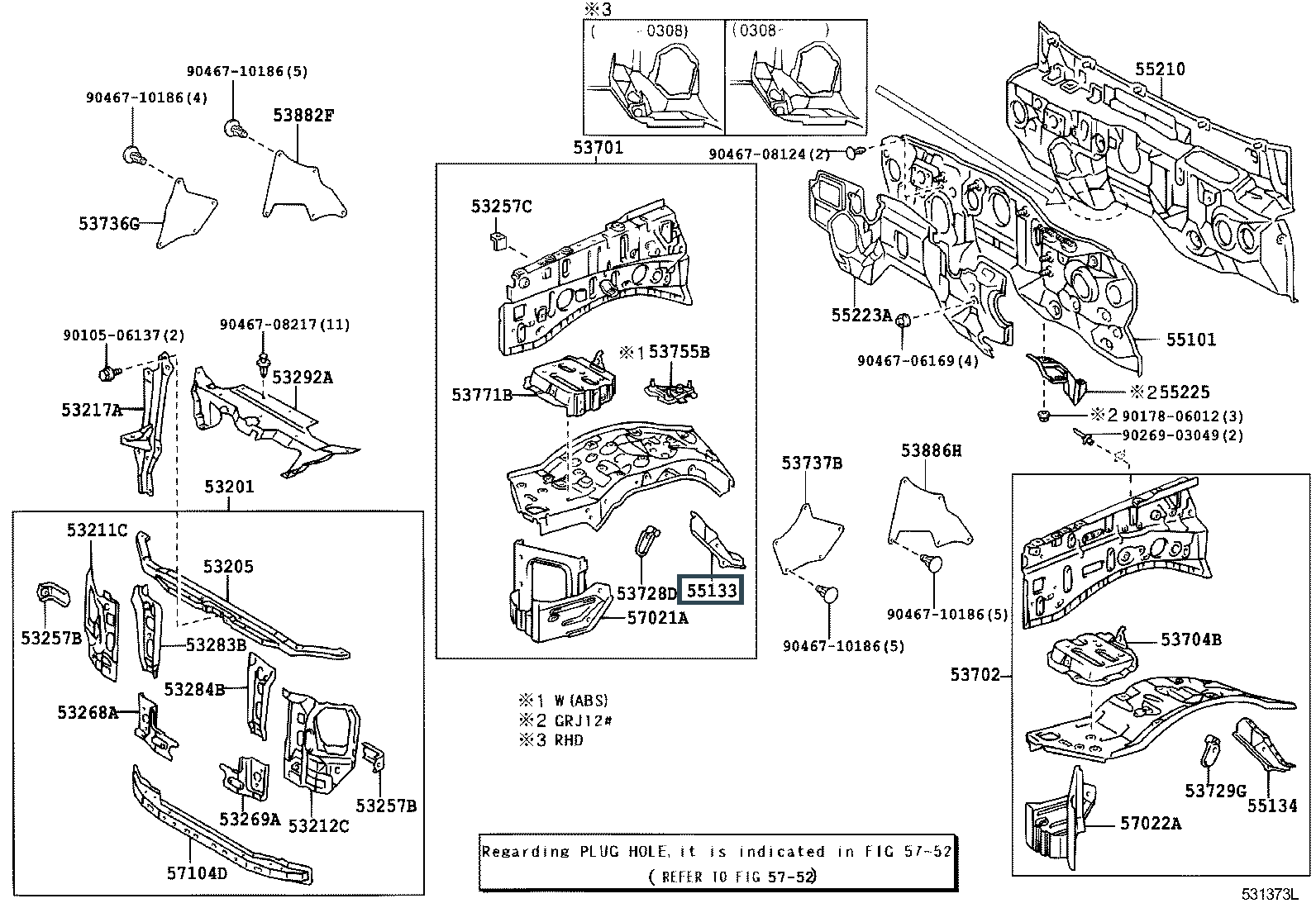 55133-60060, PLATE, FRONT FENDER APRON SET, LOWER RH