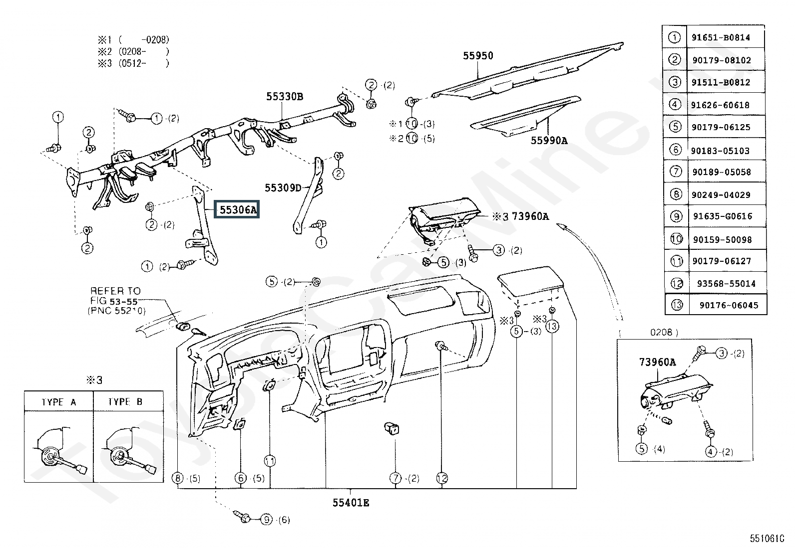 55306-60141, BRACE SUB-ASSY, INSTRUMENT PANEL, NO.1