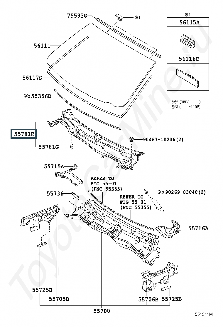 55708-53060, LOUVER SUB-ASSY, COWL TOP VENTILATOR