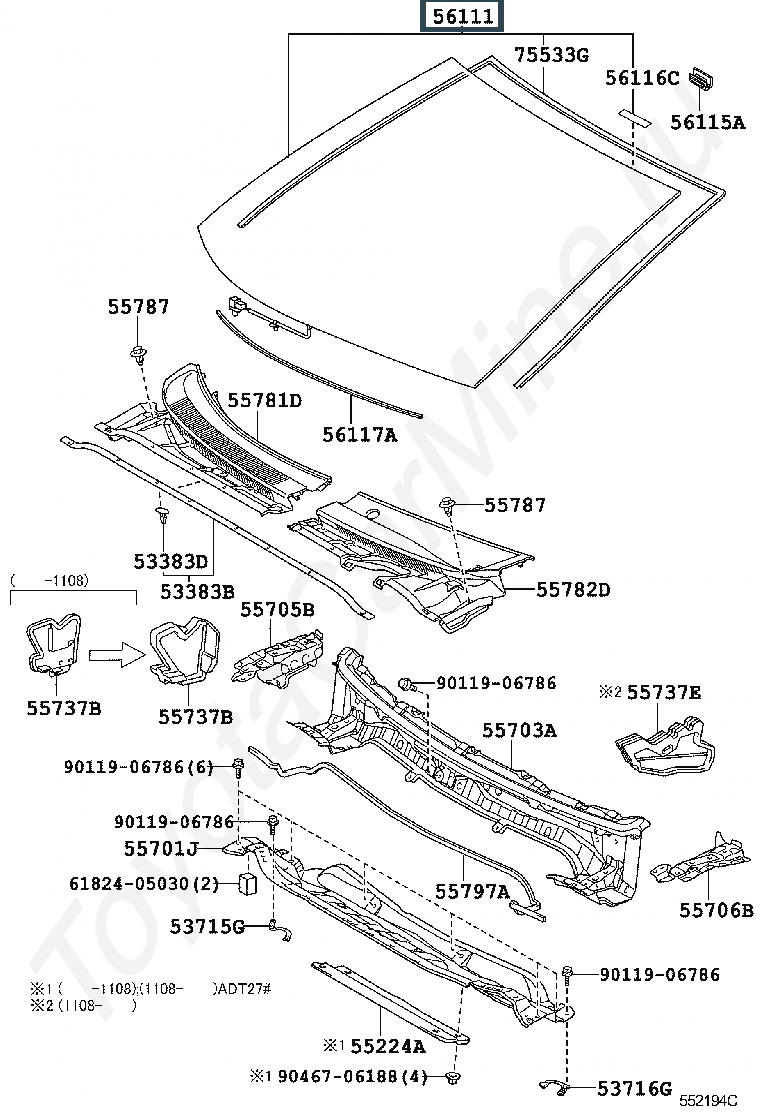 56101-05381, Стекло лобовое