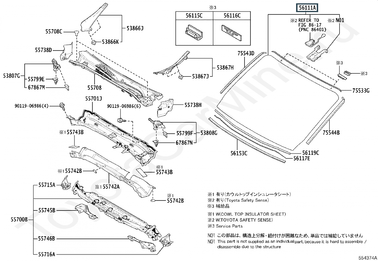56101-26390, GLASS, WINDSHIELD