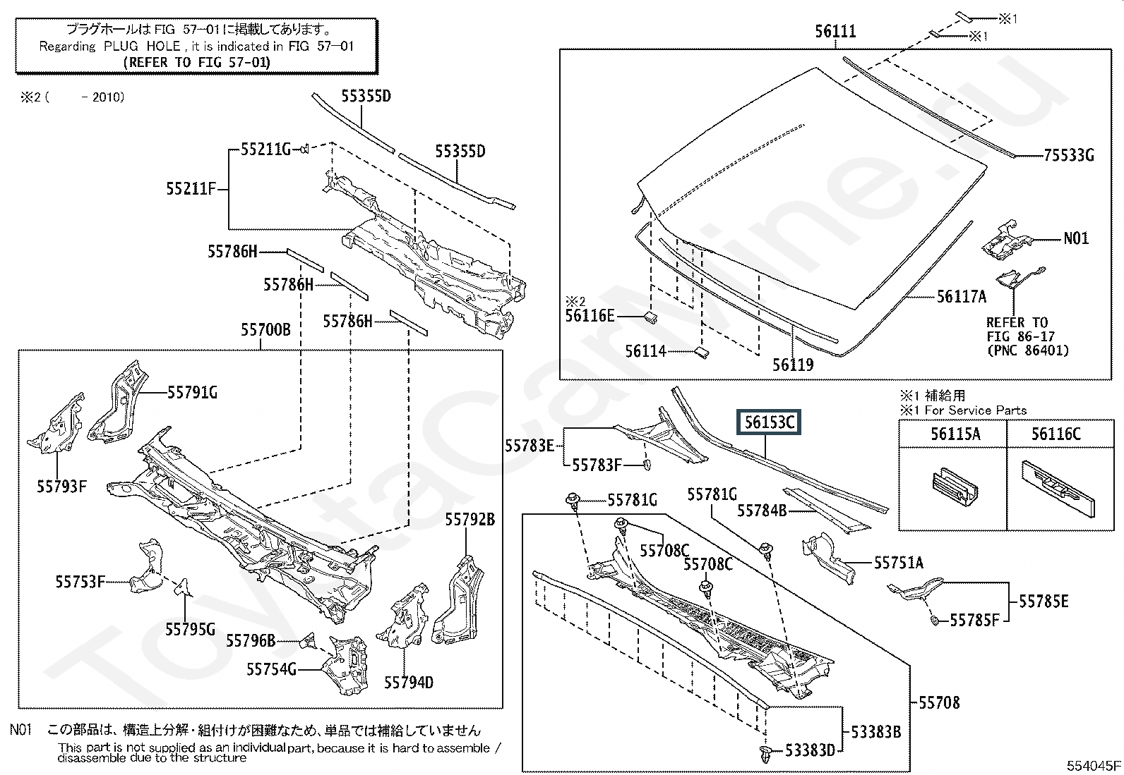 56153-50020, MOULDING, FRONT WINDOW, INNER CENTER