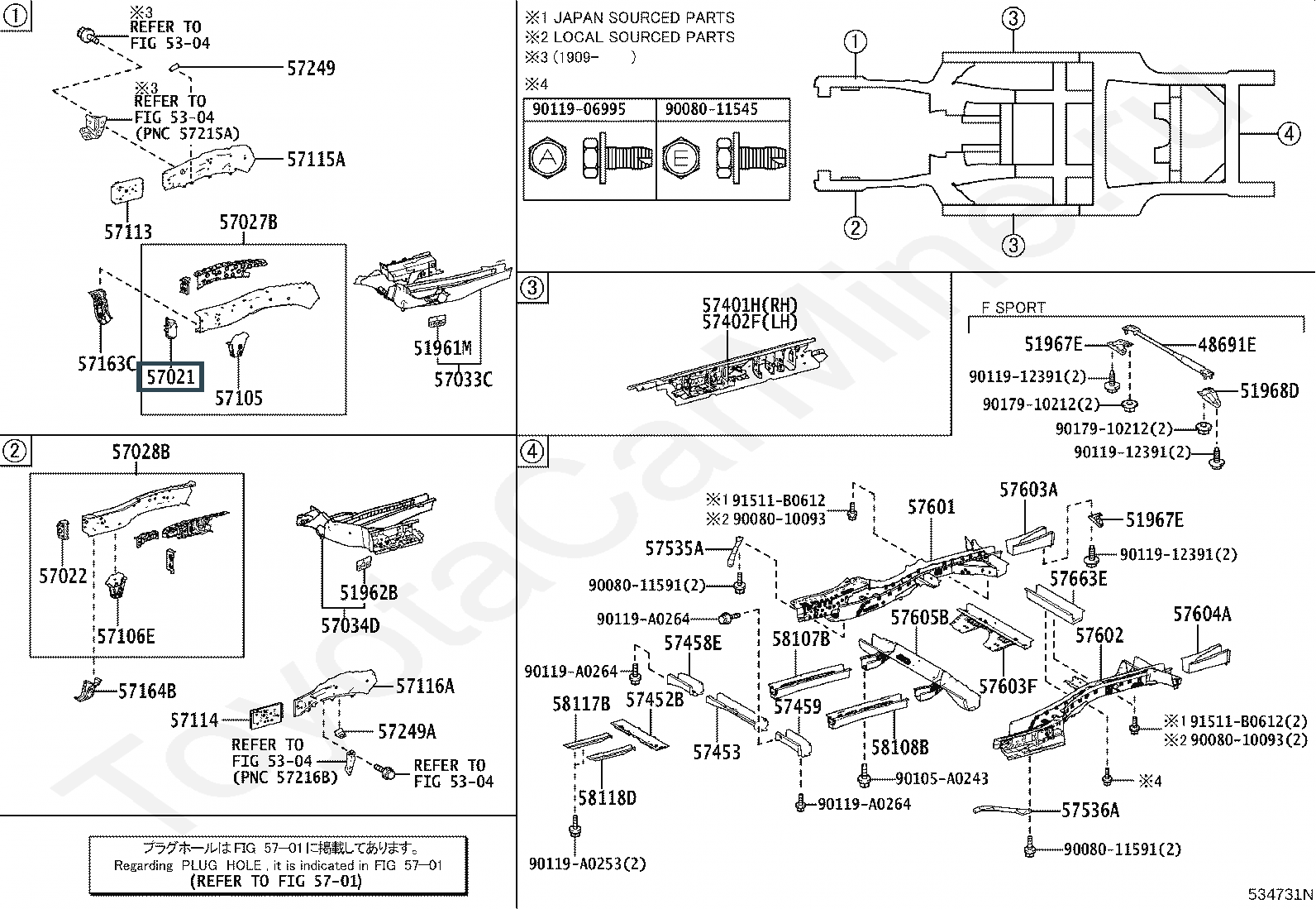 57021-0E050, BRACKET SUB-ASSY, BODY MOUNTING, NO.1 RH