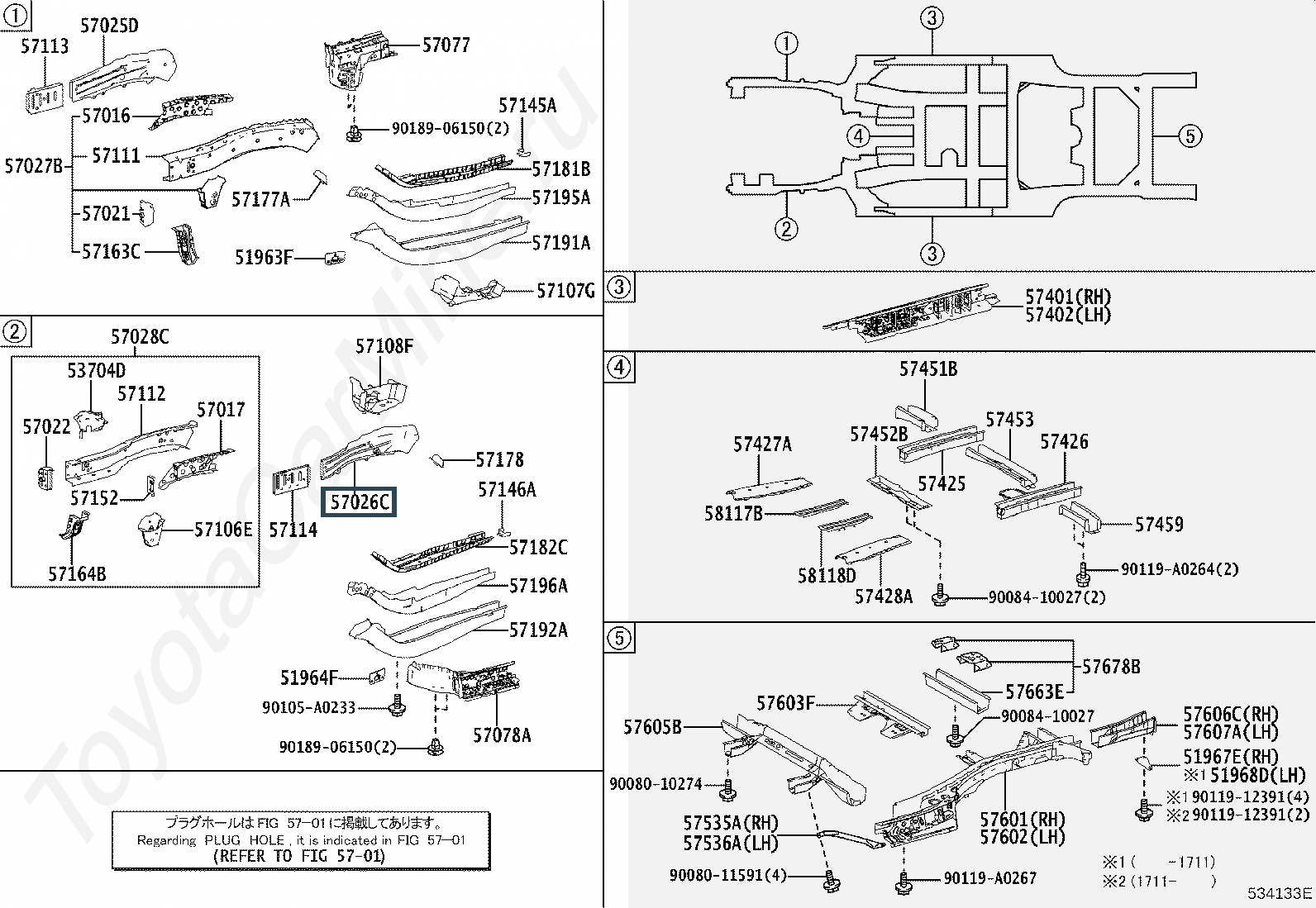57026-0E011, MEMBER SUB-ASSY, FRONT SIDE, OUTER LH