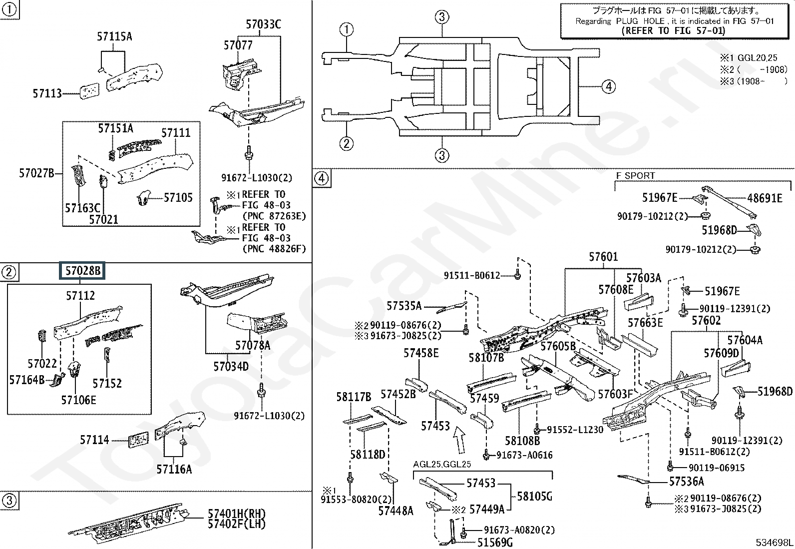 57028-48061, MEMBER SUB-ASSY, FRONT SIDE, INNER LH