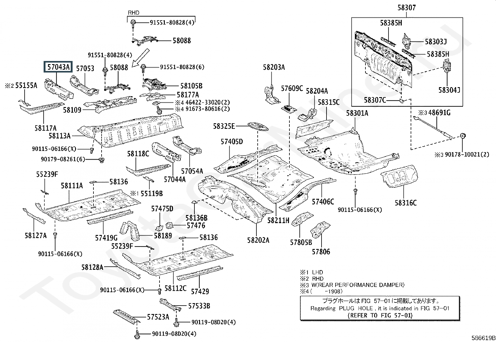 57043-33060, REINFORCEMENT SUB-ASSY, FRONT SIDE MEMBER, REAR RH