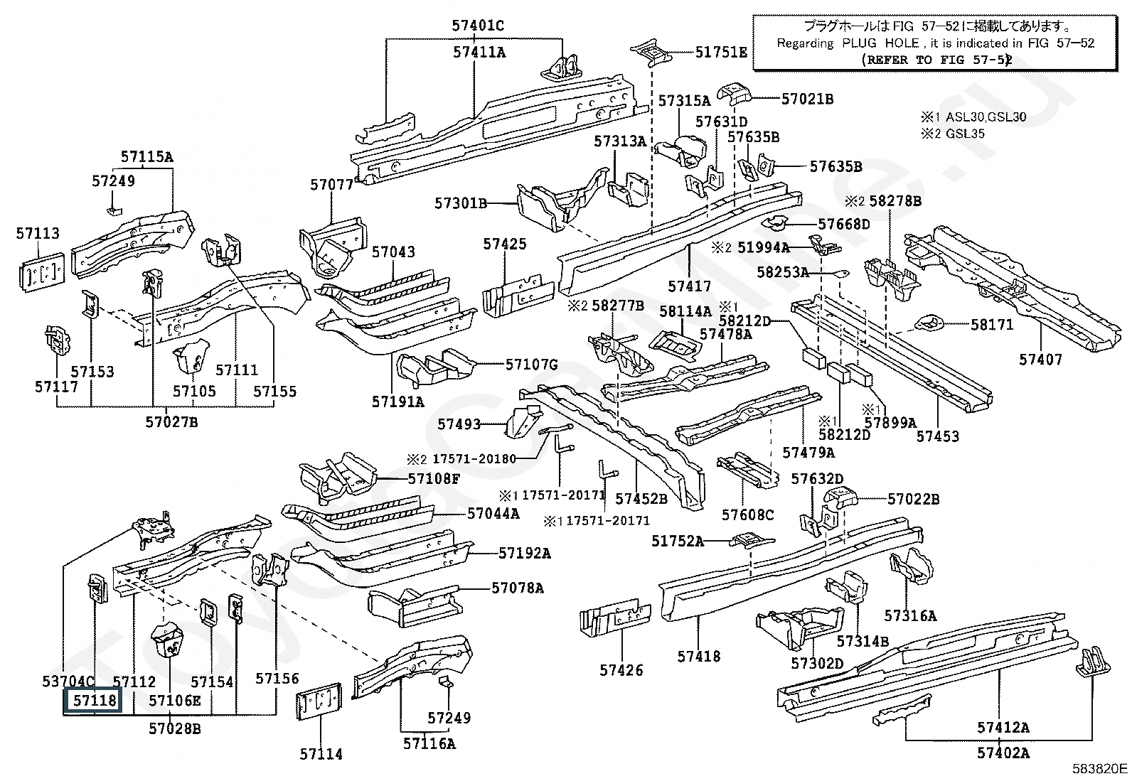 57118-08020, PLATE SUB-ASSY, FRONT SIDE MEMBER, FRONT LH