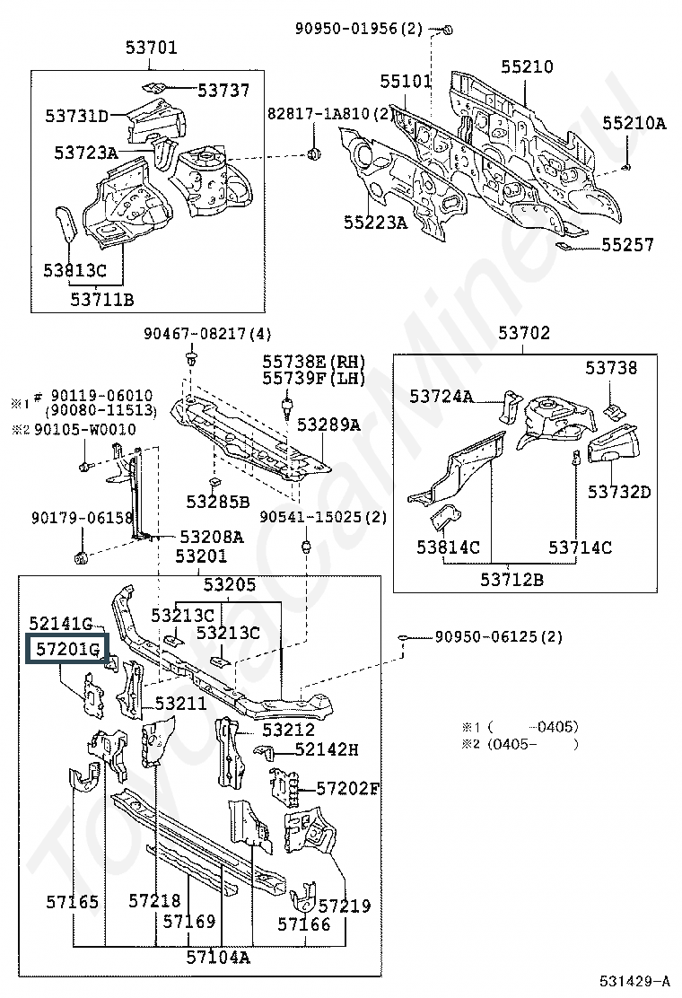 57201-02020, EXTENSION SUB-ASSY, FRONT SIDE MEMBER, RH