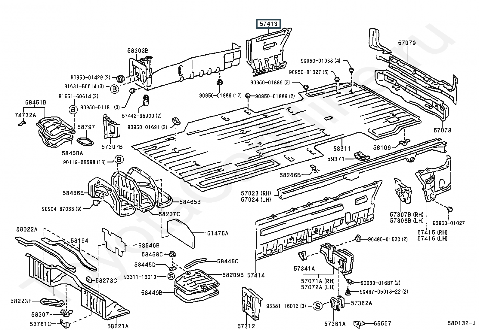 57405-95J88, RAIL, FLOOR SIDE, CENTER RH