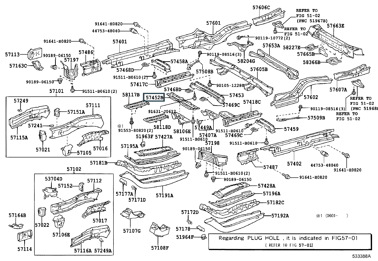 57452-48041, MEMBER, FRONT FLOOR CROSS, NO.2
