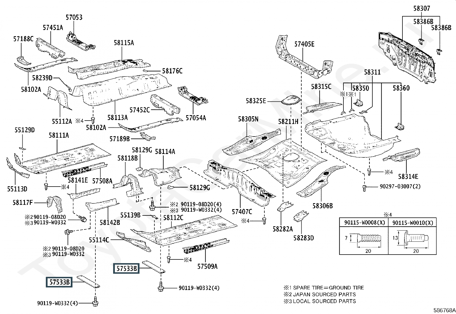 57533-F4010, BRACE, FRONT FLOOR, CENTER