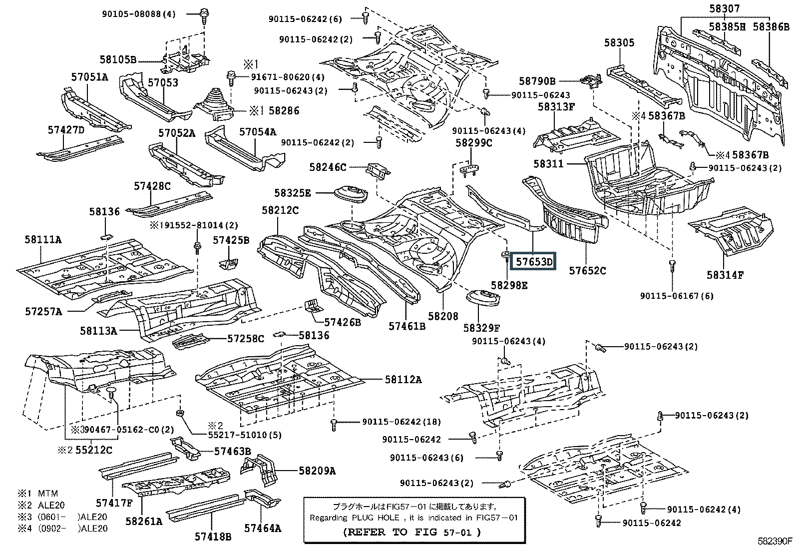 57606-30061, MEMBER, REAR FLOOR CROSS, NO.2