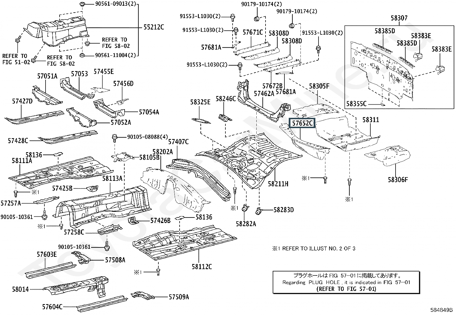 57609-53040, MEMBER, REAR FLOOR CROSS, NO.1