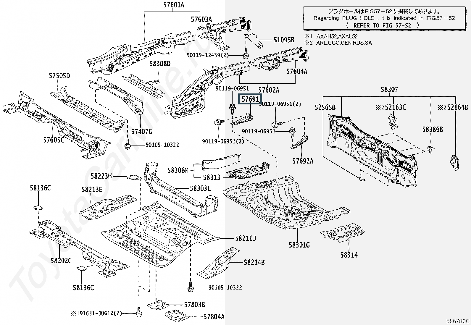 57691-42010, BRACE, REAR FLOOR NO.2 CROSSMEMBER, INNER RH