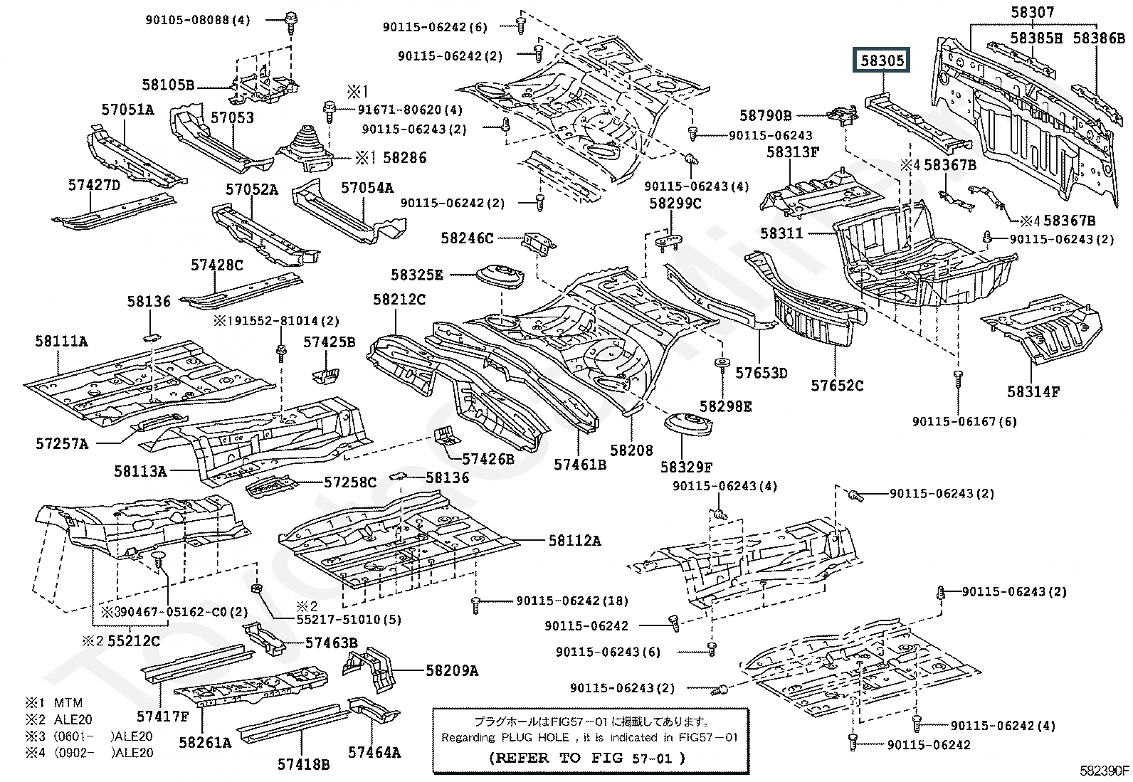 58305-30220, BRACKET SUB-ASSY, SPARE WHEEL CLAMP