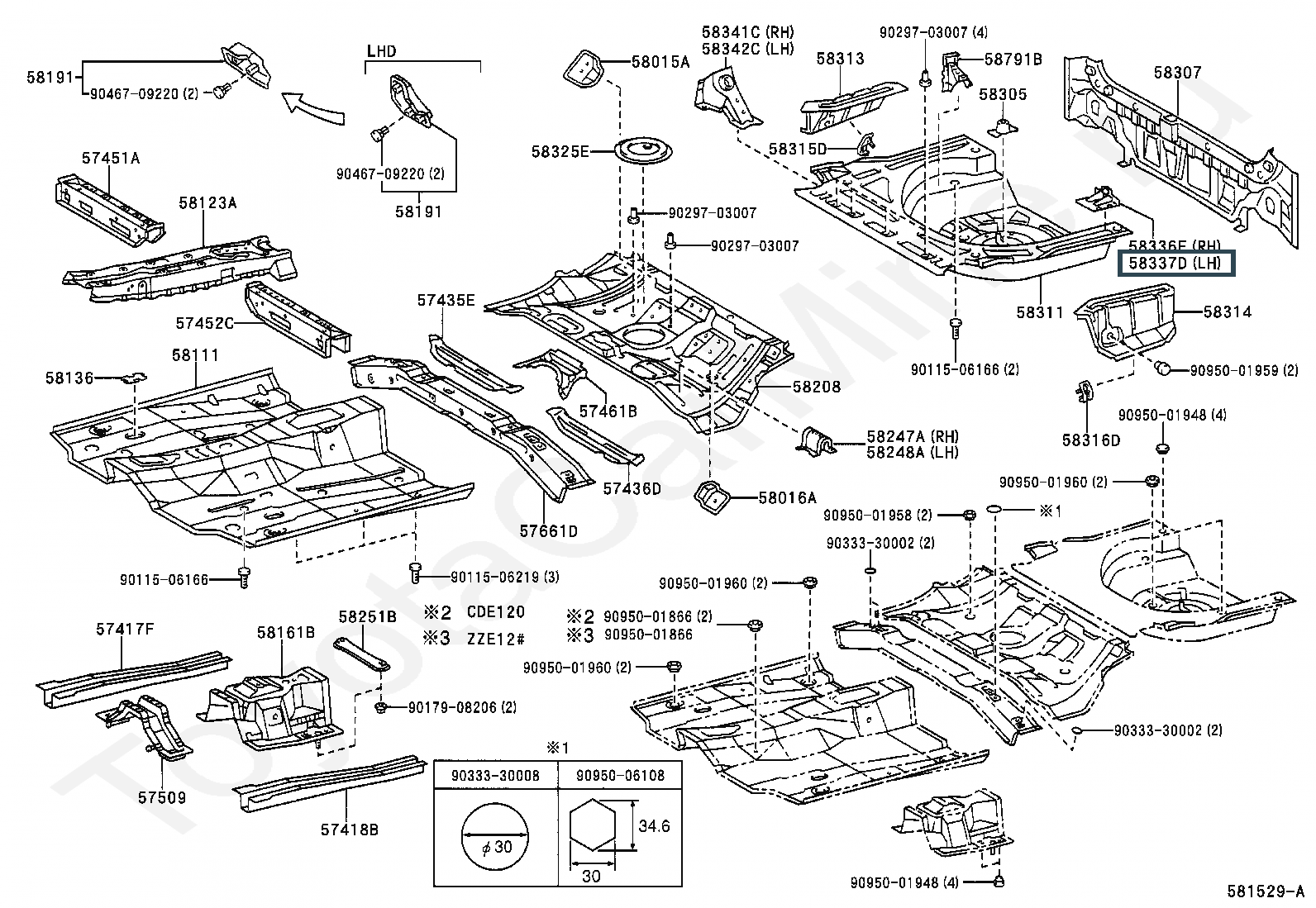 58337-12020, REINFORCEMENT, REAR FLOOR PAN, LH