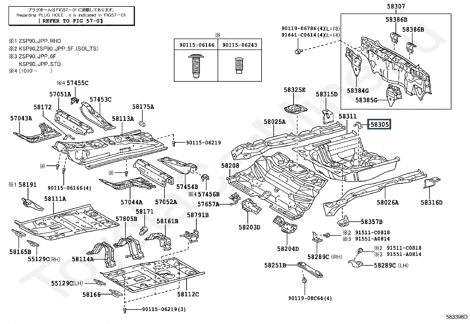 58351-52070, BRACKET SUB-ASSY, SPARE WHEEL CLAMP