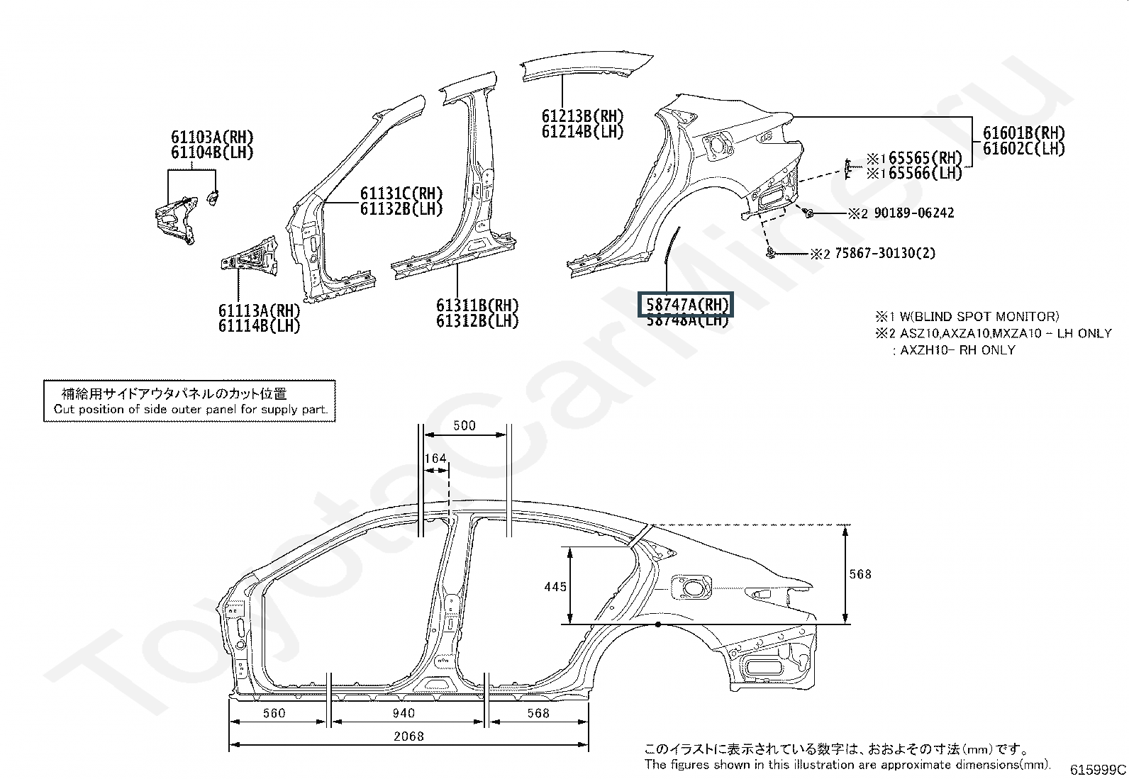 58747-33090, PROTECTOR, QUARTER PANEL, REAR RH