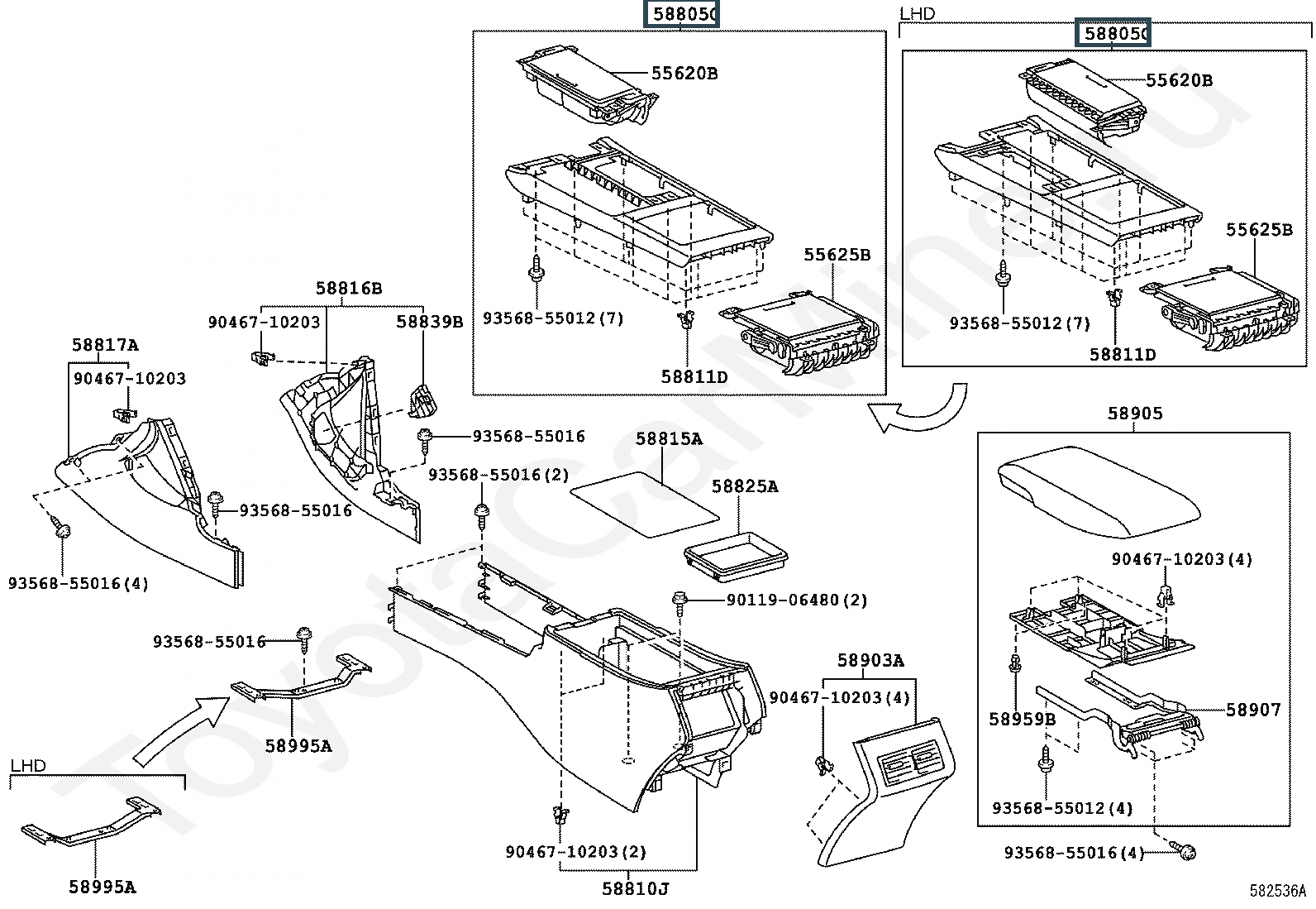 58805-33210-E0, PANEL SUB-ASSY, CONSOLE, UPPER REAR