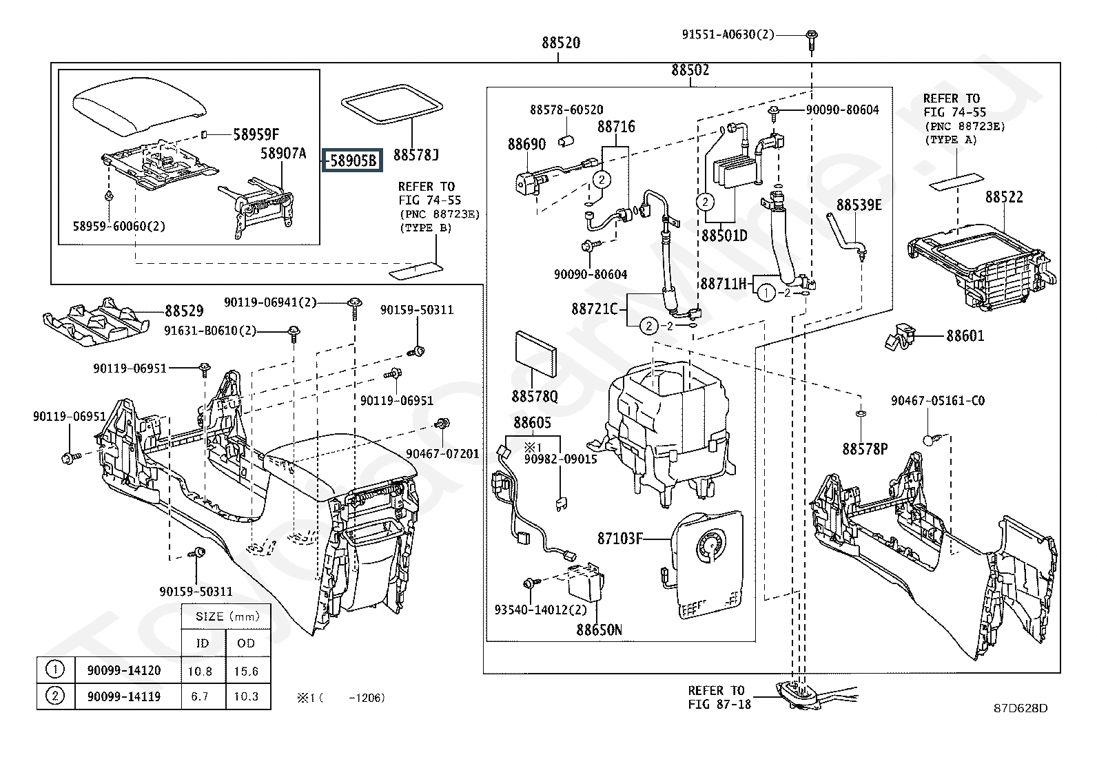 58905-60310-C1, DOOR SUB-ASSY, CONSOLE COMPARTMENT(FOR COOL BOX)