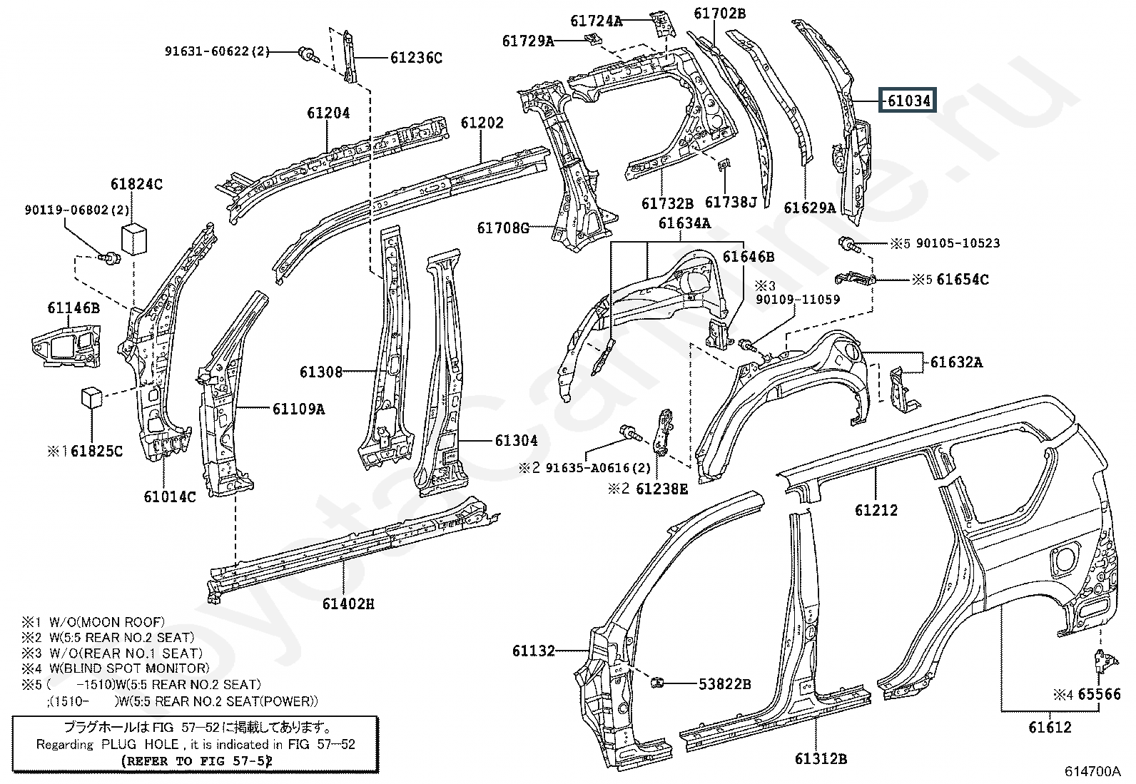 61034-60110, REINFORCE SUB-ASSY, BACK DOOR OPENING SIDE, LH