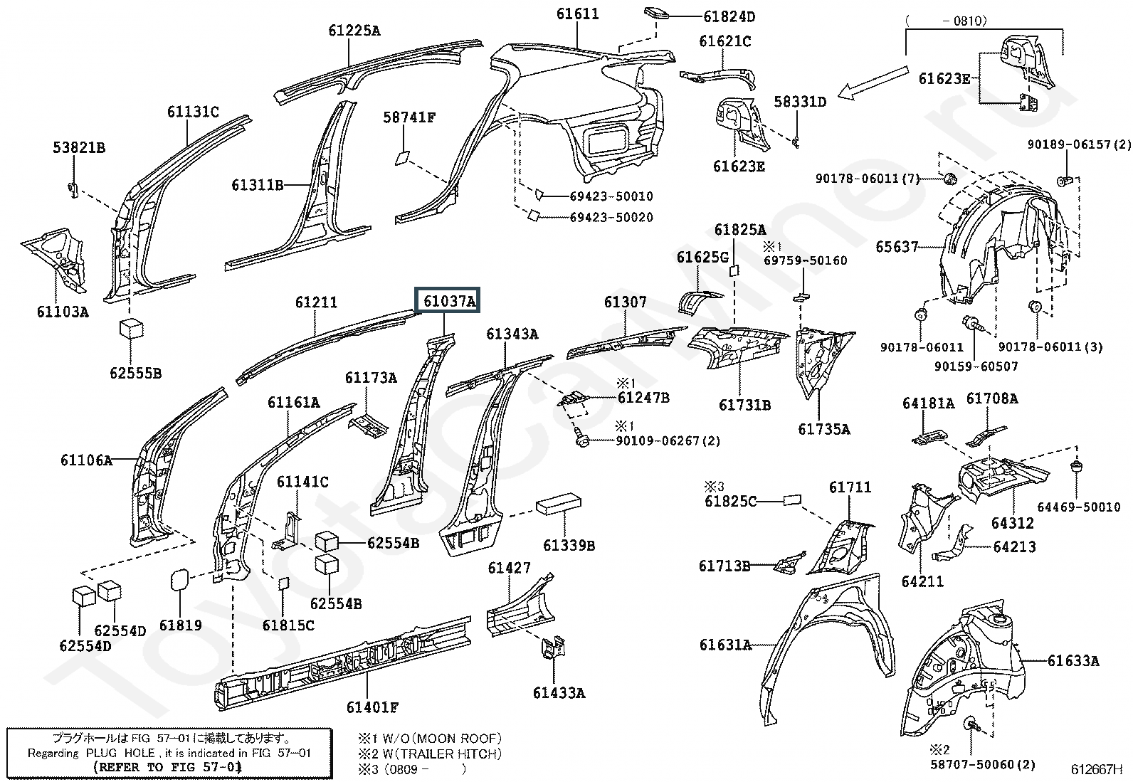 61037-50060, REINFORCEMENT SUB-ASSY, CENTER BODY PILLAR, RH