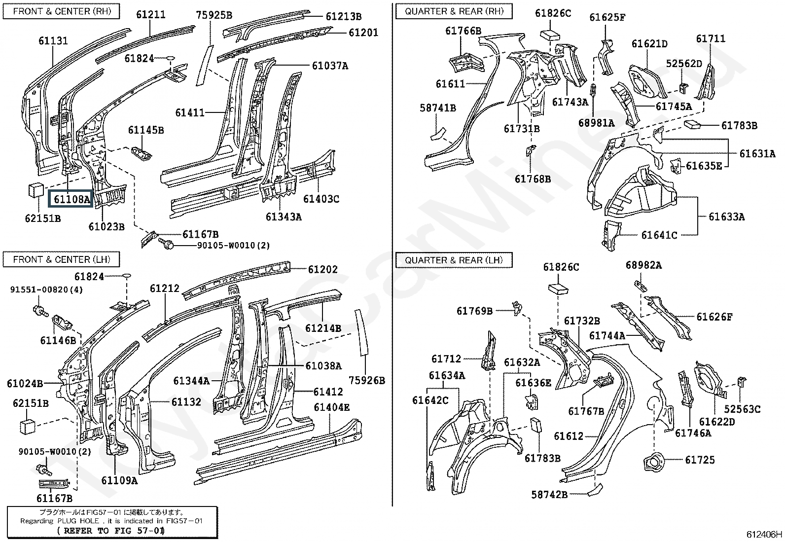 61108-0D050, REINFORCE SUB-ASSY, FRONT BODY PILLAR, LOWER RH